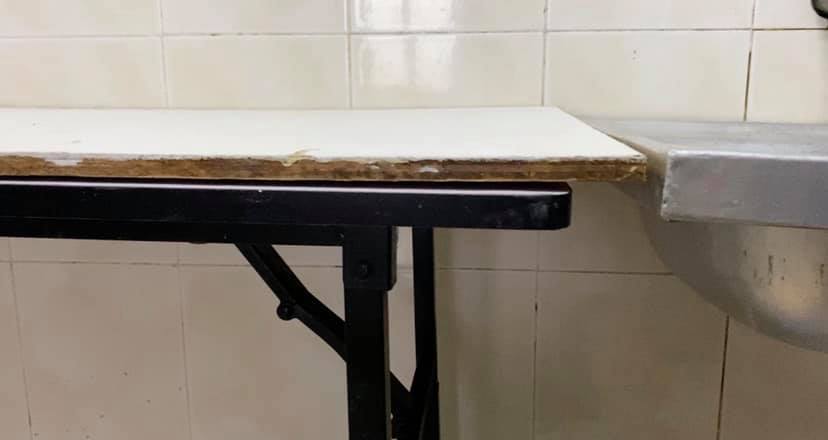 Tinggikan Meja Banquet selaras dengan Sinki, menggunakan besi yg beli di kedai hardware. Ukur siap2 Panjang Besi yg diperlukan. 8 batang diperlukan untuk 2 meja banquet. 8 batang besi berharga RM17